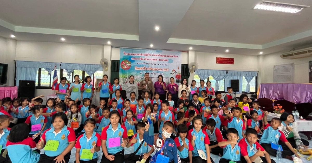 ภายใต้การอำนวยการของ พ.ต.อ.จิรวิทย์ ปานยิ้ม ผกก.สภ.ผึ่งแดด ควบคุมการปฏิบัติโดย พ.ต.ท.ภัฏ จันดาวรรณ์ สวป.ฯมอบหมายให้ ร.ต.อ.อภิเดช แสงศิริพงษ์ รอง สว.จร.ฯ ร่วมกิจกรรมโครงการส่งเสริมสุขภาพนักเรียน ประจำปีงบประมาณ พ.ศ.2567 บรรยายในหัวข้อ ยาเสพติดให้โทษ ณ โรงเรียนบ้านพังคอง ต.บ้านโคก อ.เมือง จ.มุกดาหาร