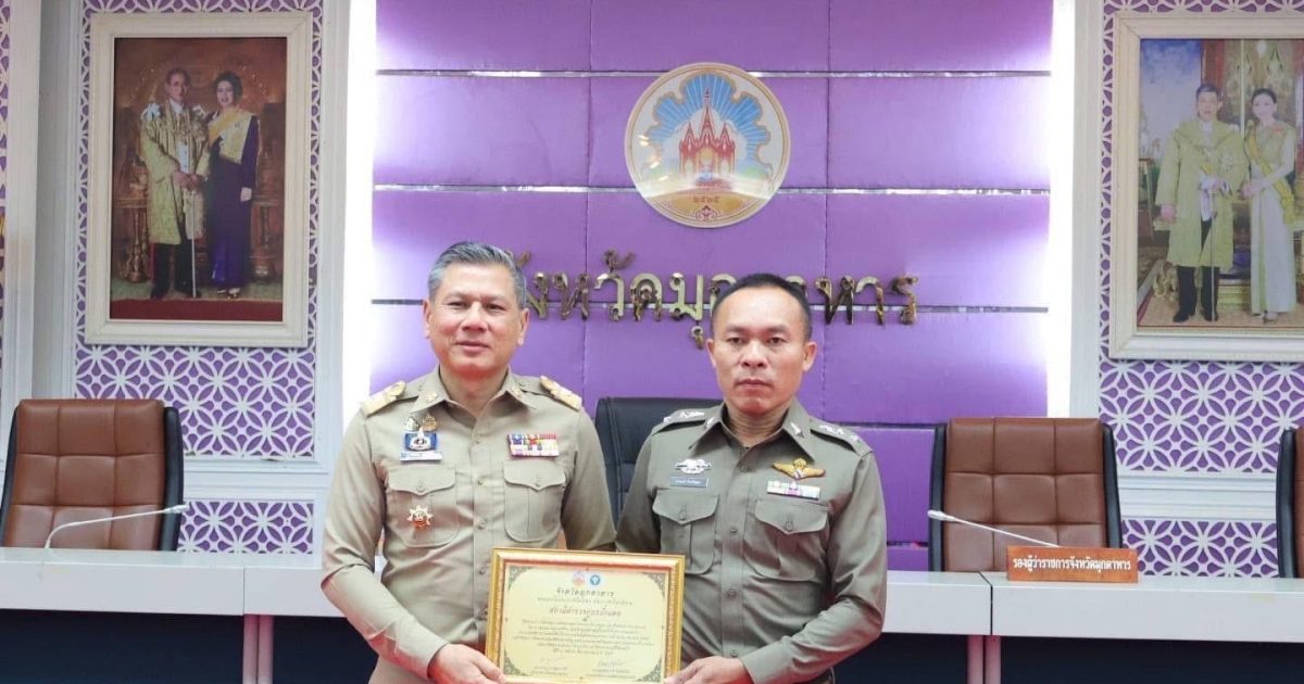 พ.ต.อ.จิรวิทย์ ปานยิ้ม ผกก.สภ.ผึ่งแดด มอบหมายให้ พ.ต.ท.อานนท์ ด้วงปัญญา รอง ผกก.สส.ฯเป็นตัวแทนรับมอบใบประกาศนียบัตรฯหน่วยงานและบุคคลที่สนับสนุนงานพิธีพุทธาภิเษกรูปหล่อพระเจ้าองค์หลวงฯเพื่อสนับสนุนสร้างศูนย์หัวใจ รพ.มุกดาหาร ณ ห้องประชุมแก้วกินรีฯ โดยมีผู้ว่าราชการ จว.มุกดาหาร เป็นประธาน