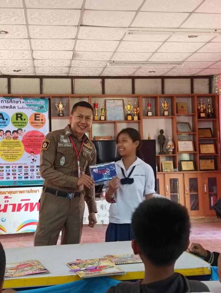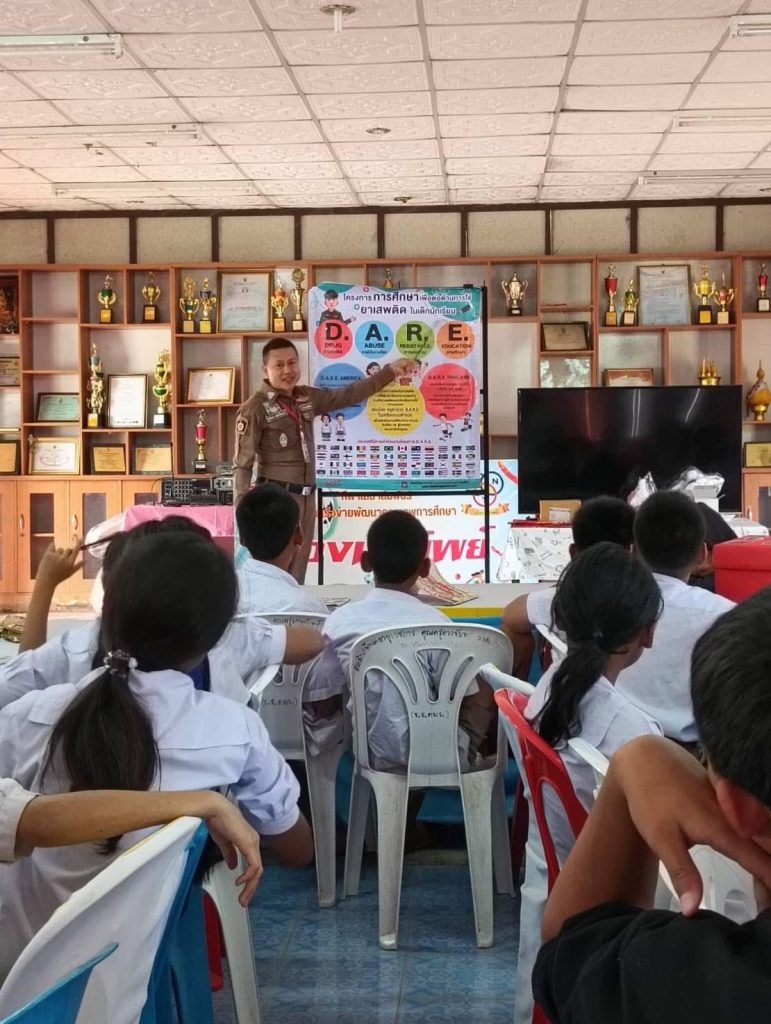 วันที่ 25 ก.พ.2568 เวลา 13.00 น.- 15.00 น.ภายใต้การอำนวยการของ พ.ต.อ.จิรวิทย์ ปานยิ้ม ผกก.สภ.ผึ่งแดด ควบคุมการปฏิบัติโดย พ.ต.ท.ภัฏ จันดาวรรณ์ สวป.ฯมอบหมายให้ ร.ต.อ.อภิเดช แสงศิริพงษ์ ทำหน้าที่สอนนักเรียนแดร์( D.A.R.E.) เพื่อต่อต้านการใช้ยาเสพติดและการใช้ความรุนแรงในเด็กนักเรียน ชั้น ป.5,ป.6 โรงเรียนไตรมิตรวิทยาคม ต.ผึ่งแดด อ.เมือง จ.มุกดาหาร 25 กุมภาพันธ์ 2568 โดย phungdaedmuk / ข่าวประชาสัมพันธ์,ข่าวกิจกรรม,ข่าวประชาสัมพันธ์,ข่าวประชาสัมพันธ์,ข่าวฝากประชาสัมพันธ์ FacebookFacebookXXLINELine