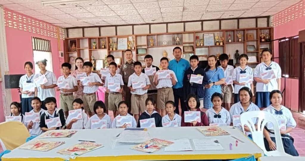 วันที่ 4 มี.ค.2568 เวลา 13.00 น.- 15.00 น.ภายใต้การอำนวยการของ พ.ต.ท.ชยพล กิจันทร์รอง ผกก.(สอบสวน)ฯ รรท.ผกก.สภ.ผึ่งเเดด มอบหมายให้ ร.ต.อ.อภิเดช แสงศิริพงษ์ ทำหน้าที่สอนนักเรียนแดร์( D.A.R.E.) เพื่อต่อต้านการใช้ยาเสพติดและการใช้ความรุนแรงในเด็กนักเรียน ชั้น ป.5,ป.6 โรงเรียนไตรมิตรวิทยาคม ต.ผึ่งแดด อ.เมือง จ.มุกดาหาร 4 มีนาคม 2568 โดย phungdaedmuk / ข่าวประชาสัมพันธ์,ข่าวกิจกรรม,ข่าวประชาสัมพันธ์,ข่าวประชาสัมพันธ์,ข่าวฝากประชาสัมพันธ์ FacebookFacebookXXLINELine
