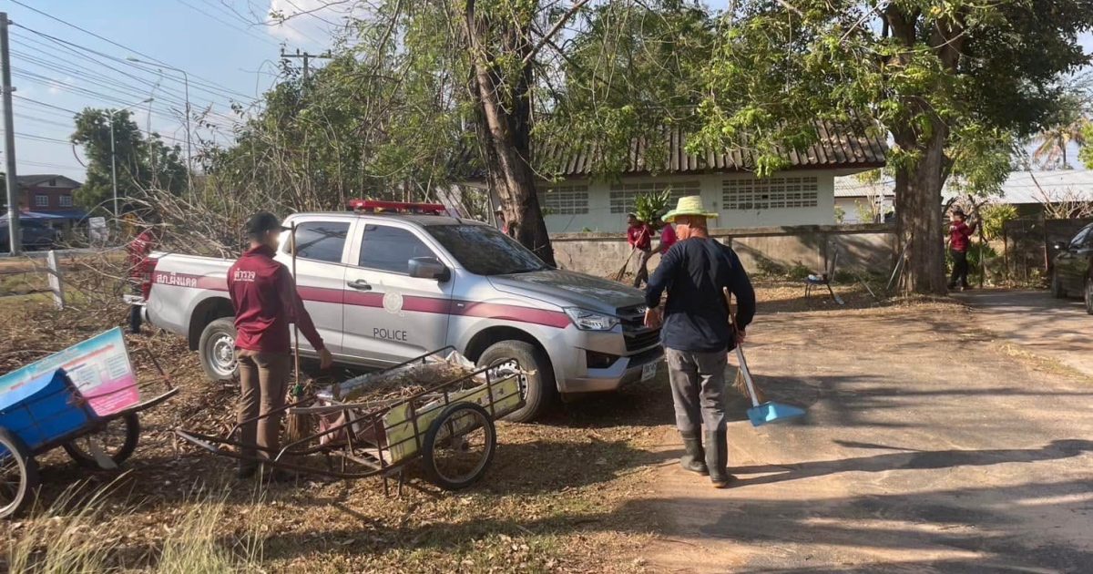 มอบหมายให้ พ.ต.ท.พูลศักดิ์ กลางประพันธ์ สว.สส.สภ.ผึ่งเเดด, ว่าที่ พ.ต.ต.ชินกรณ์ อาจวิชัย สวป.สภ.ผึ่งเเดด พร้อมด้วยข้าราชการตำรวจ สภ.ผึ่งเเดด รวม 25 นาย ดำเนินกิจกรรมจิตอาสาพัฒนาปรับปรุงภูมิทัศน์ เก็บกวาดใบไม้,เก็บขยะ บริเวณโดยรอบพื้นที่ สภ.ผึ่งแดด