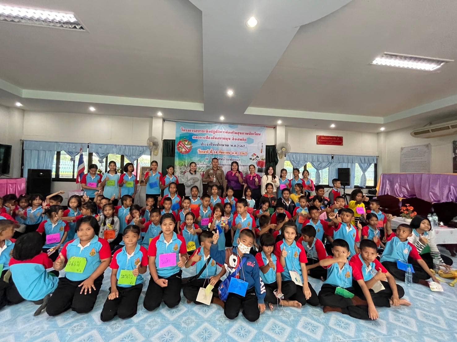 พ.ต.อ.จิรวิทย์ ปานยิ้ม ผกก.สภ.ผึ่งแดด มอบหมายให้ ร.ต.อ.อภิเดช แสงศิริพงษ์ รอง สว.จร.ฯ ร่วมกิจกรรมโครงการส่งเสริมสุขภาพนักเรียน ประจำปีงบประมาณ พ.ศ.2567 บรรยายในหัวข้อ ยาเสพติดให้โทษ ณ โรงเรียนบ้านพังคอง